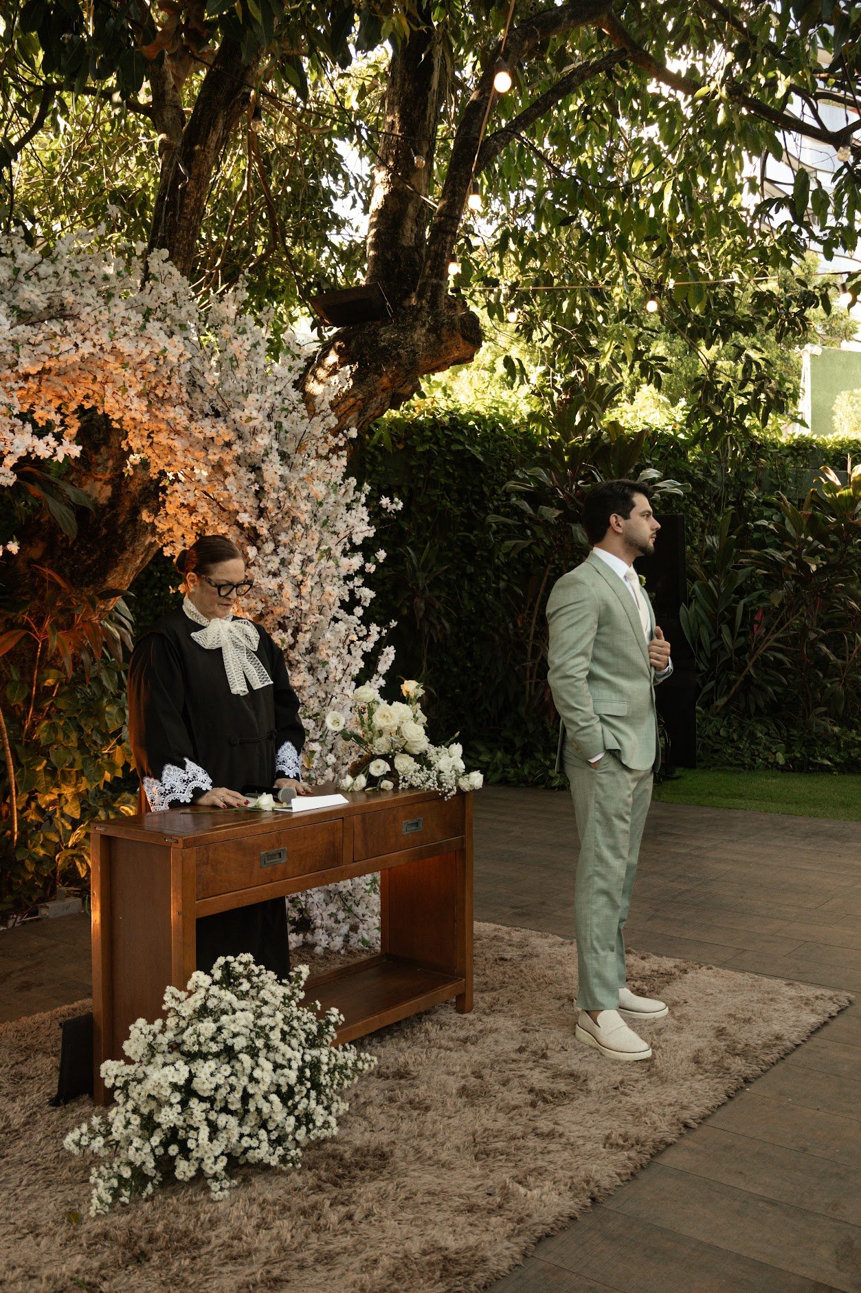 Em seguida, o casal celebrou o casamento civil no restaurante Pipo, em um cenário intimista, cercado pela natureza, que trouxe ainda mais beleza e significado ao momento. A cerimônia foi marcada por uma atmosfera leve, rica em emoção e cheia de sensibilidade.