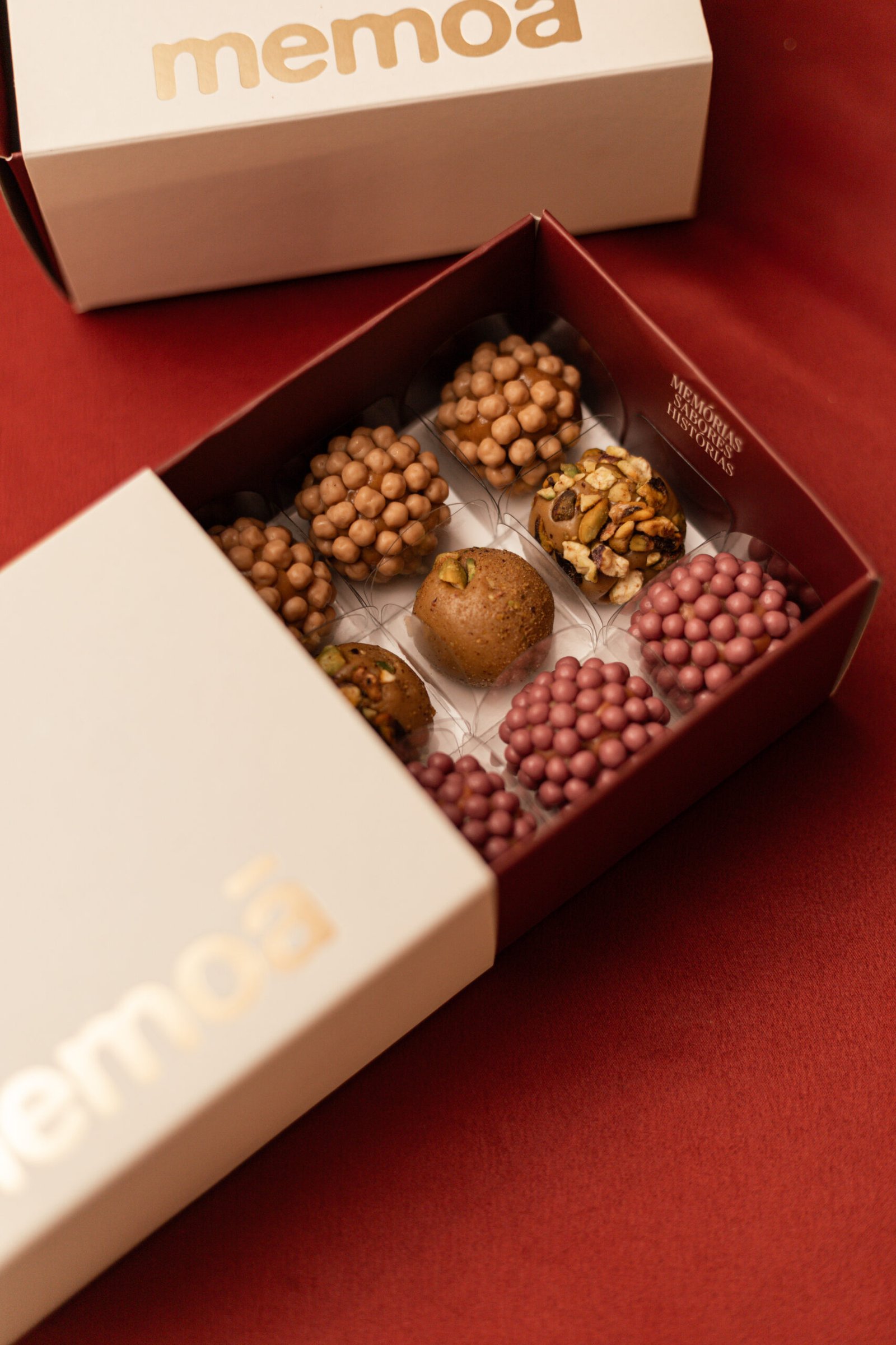 As fotografias foram pensadas tanto para uso comercial quanto institucional, fortalecendo o posicionamento da marca e destacando a identidade artesanal da Memoa, sem excessos visuais, permitindo que os doces fossem os protagonistas da narrativa.